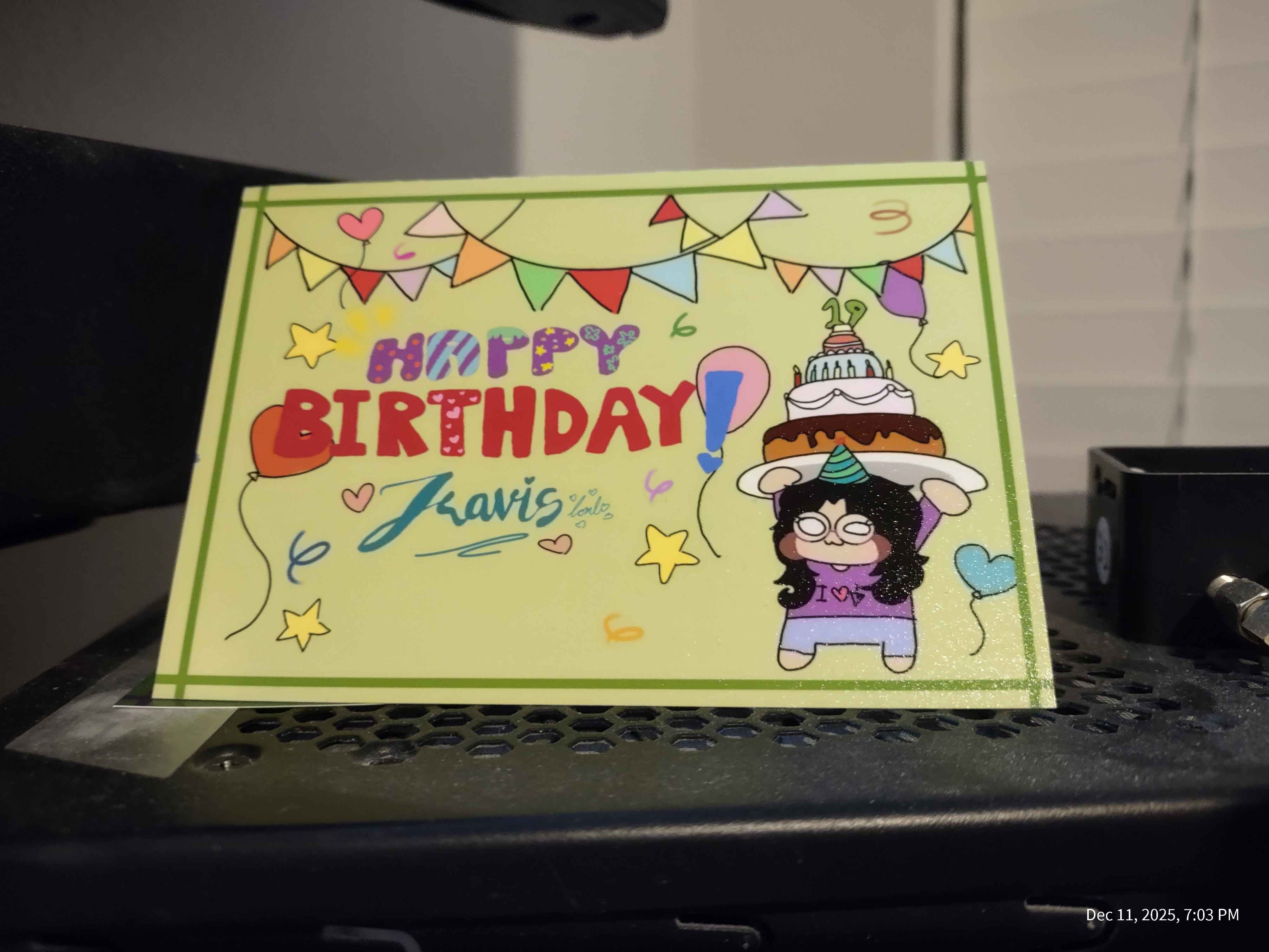 A card you made for my birthday that I look at every single day, before I clean it tomorrow.